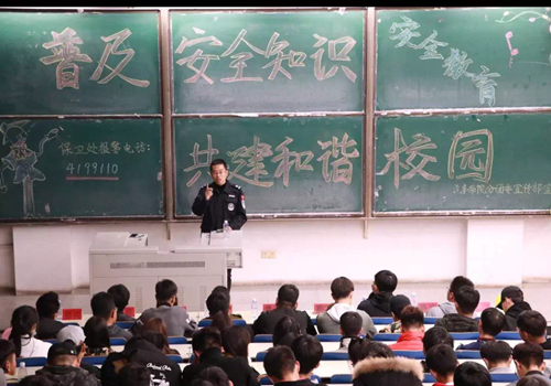 本次讲座以生动的校园诈骗案例小品拉开序幕,使同学们意识到日常生活中可能会出现的诈骗,紧接着播放安全知识教育宣传片,警醒每一位同学。讲座中,张钦华老师主要讲述了治安防范与消防安全两方面内容,列举真实案例,从维护学生群体稳定安全的重要性入手,针对新生刚入校缺乏基本校园安全知识的特点以及同学们可能面临的安全隐患,为同学们进行系统的安全教育讲解和警示。针对新生着重从学生公寓现存的消防设备设施情况和学校消防管理体系建设两个方面进行了全面细致地讲解,使同学们意识到消防安全的重要性。此外,他还讲解了校园贷、传销等主要校园金融风险及其危害,提醒同学们树立正确的消费观,提高金融风险防范意识,坚决抵制过度消费和不良借贷行为。